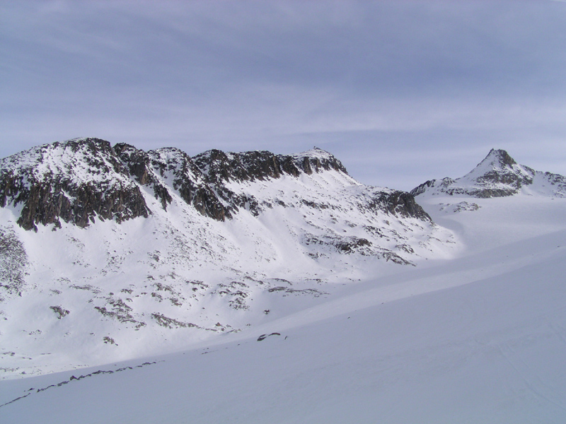 Nach dem Abstieg vom Gross Leckihorn nahmen Reto und ich den Aufstieg zum Stellibodenhorn in Angriff. Vom Leckipass sind es noch 100 Höhenmeter zu Fuss, welche in griffigem Trittschnee gut zu meistern sind. Bei der Abfahrt überquerten wir den Muttengletscher und fuhren an der Muttenreuss entlang Richtung Realp, bis wir den Rotondohütten-Sommerweg erreichten. Diese Route ist nicht zu empfehlen, sondern eher die Variante über Deieren (Gegenanstieg). Schwierigkeit: Aufstieg WS+, Abfahrt ZS.