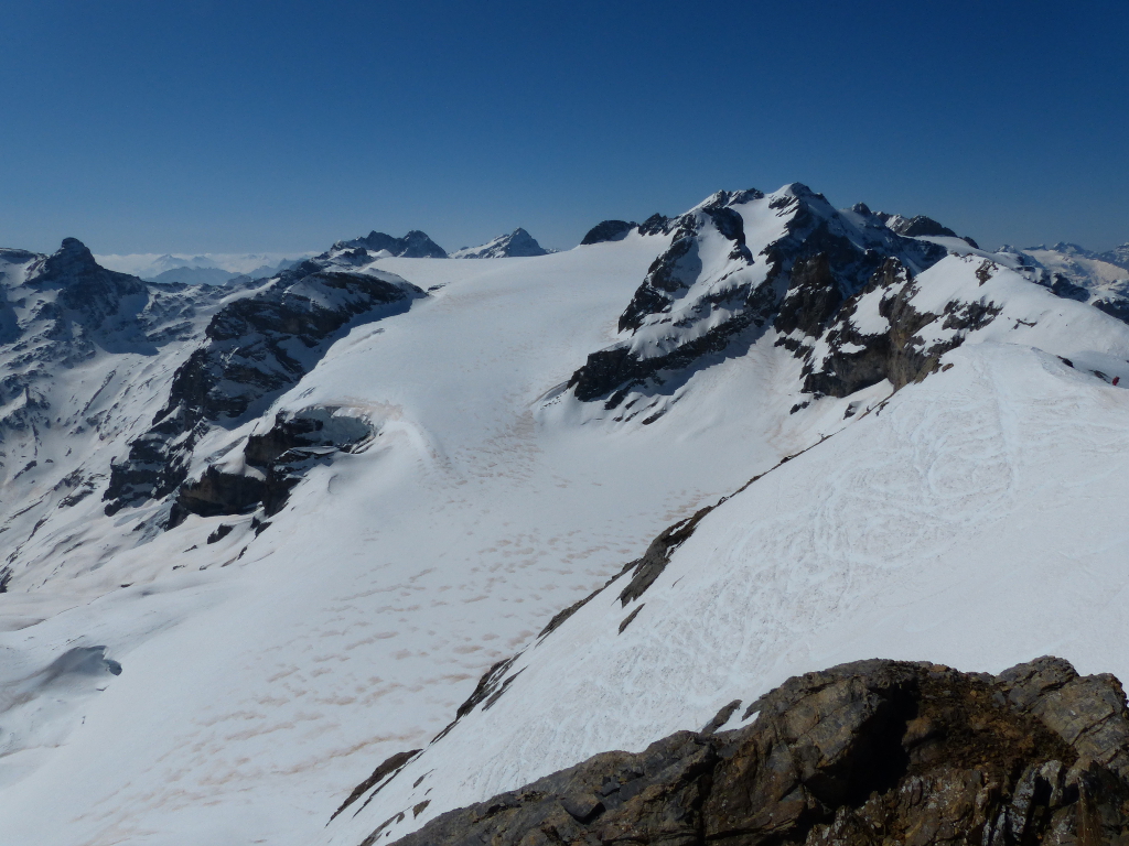 Vom Urnerboden nahmen wir die Seilbahn hoch zum Fisetenpass auf 2000 m. Von dort ging es zuerst alles neben dem abfallenden Grat, das heisst immer auf dem Gratrücken in Richtung Gemsfairenstock. Die Schlüsselstellen bildeten der Aufstieg links vom Rund Loch und dann die Steilstufe bei Ober Sulzbalm, wo wir die Skier kurz ausziehen mussten. Es hatte generell sehr wenig Schnee im ganzen Gebiet. Es hatte schon länger nicht mehr geschneit und der Altschnee war relativ hart. Man musste immer wieder den hervorguckenden Steinen ausweichen. Weiter ging es auf den Grat westlich des Gipfels und dann noch mit den Skiern bis ganz nach oben auf den höchsten Punkt des Gemsfairenstock. Die Skitour auf den Gemsfairenstock ist sehr abwechslungsreich und der Aufstieg bietet ein hochalpines Feeling. Schwierigkeit: WS+.