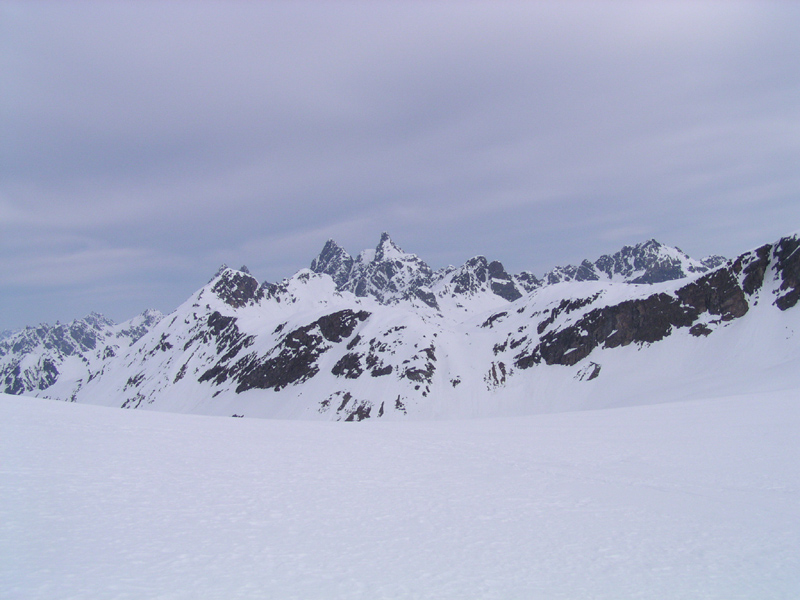 Die markanten zwei Türme dürften Gross Seehorn und Gross Litzner sein