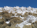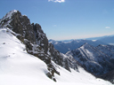 Wir queren auf dem Wanderweg zum Val Ruscada. Wir brauchen aber viel länger als geplant. Auf dem Weg liegt Altschnee. Zuerst versuche ich es noch ohne Steigeisen. Mit der Zeit gebe ich es jedoch auf und montiere mir auch die Eisen. Durch die nötige Vorsicht und die grosse horizontale Distanz vergeht die Zeit wieder mal sehr schnell. Wir gelangen tiefer ins Val Ruscada und erreichen am frühen Nachmittag unter strahlblauem Himmel den Passo Ruscada. Noch einer etwas heikleren Querung folgt die kritischste Stelle. Den Pass, welcher zum Valle di Moleno runterführt hat ein grosse Wächte und eine paar kurze fast senkrechte mit Triebschnee gefüllte Höhenmeter, die überwunden werden müssen. Zuerst breche ich mal die Wächte ab, um mir besser ein Bild machen zu können. Oje, alles Triebschnee, über einen Meter tief. Ich erinnere mich, dass ich noch Bandschlingen und Reepschnüre eingepackt habe. Wir improvisieren an einer Felspartie einen Stand. Ich bastle mir mit den Bandschlingen ein sehr einfaches Gstältli und mein Kollege sichert mich an einer Reepschnur. Das Lawinenrisiko jagt mir schon Furcht ein. Wir haben die Lawinenausrüstung dabei. Ich klettere Schritt für Schritt herunter und teste mit Stampfen die Stabilität der Schneedecke. Nach etwa dem zweiten Schriit löst sich die Spannung der Schneedecke und einen Meter unter mir erfolgt ein kleiner Anriss. Gesichert steige ich bis ins flachere Gelände. Mein Kollege kommt nach und alles geht gut. Bald folgt das nächste Abenteuer: Das Finden der optimalen Route durch das felsdurchsetzte Gelände. Im Sommer lauft man normalerweise ohne zu überlegen durch. Aus dem Bergweg wird nun eine steile Schneeflanke mit Felsabsätzen. Der nicht mehr griffige Schnee lässt den Pickel auch nich mehr wie gewünscht reinhauen. Auf jeden Fall sind wir froh, diese Passagen hinter uns zu haben. Zum Dessert folgt nun der ganze Abstieg durch das Valle die Moleno. Dieser ist länger als die Polizei erlaubt. Auf die letzten Minuten erreichen wir das letzte Postauto um 19.36 Uhr.