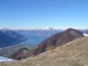 Wir steigen nach Mornera ab und nehmen das Bänli nach Monte Carasso. Die super Italienischkenntnisse "verseckeln" uns wieder einmal, denn wir stimmen beim Mittagessen im Restaurant in Sementina dem uns vorgeschlagenen Menü zu. Statt Fleisch wie wir verstanden haben, kriegen wir reine Schwarten. Halb schlecht wandern wir von Sementina 1200 Höhenmeter hoch zur Capanna Mognone (1463 m ü M.)(T2). Was für eine prächtige Terrasse erwartet uns. Ich kann die Freude kaum fassen. Solche eine fantastische Aussicht bis auf etliche Walliser Gipfel, Gran Paradiso, Pizzo di Claro, Tessiner Südalpen, und viele mehr hätte ich nie erwartet. Die Hütte ist urgemütlich und wir sind wie gestern alleine in der Hütte.
