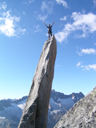 | Salbitschijen (UR) 2981 Bild: Portrait auf der Salbitnadel Standortsanzeige | Salbit-Ostgrat | Mit Susanna Widmer | Meiental | 21.09.2005 | |